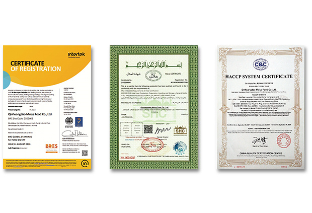 美燁所用設(shè)備設(shè)施均按出口食品生產(chǎn)企業(yè)注冊(cè)衛(wèi)生規(guī)范要求設(shè)計(jì)安裝,本公司已經(jīng)通過美國(guó)HACCP、英國(guó)BRC、清真HALAL認(rèn)證,并在美國(guó)FDA、歐盟、俄羅斯等注冊(cè)備案,現(xiàn)...